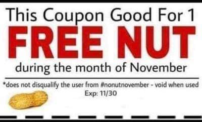 This Coupon Is Good For Infinite Nuts During No Nut November You Possess Ths Coupon And Nut You Wl Not Be Diqualfied From No Nut November Exp Date At
