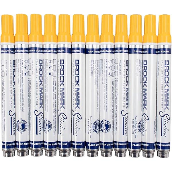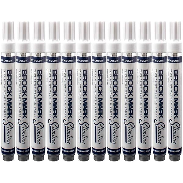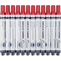 12 Pc Set Red Brockmark Slimline Industrial Paint Markers Opaque Gloss Pen Metal Wood Plastic Glass For Auto Construction Arts Home